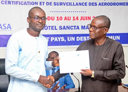 A l’issue de cette formation, le Colonel John BARARMNA-BOUKPESSI, Directeur Général Adjoint de l’ANAC Togo, a exprimé au nom du Directeur Général de l’ANAC, sa gratitude envers les formateurs, notamment Mme Christelle CHESSERON, inspecteur des aéroports à la Direction Générale de l’Aviation Civile (DGAC) de la France, pour leur expertise et contribution à l’enrichissement des connaissances des participants.