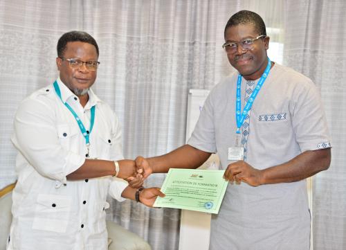La fin de la formation fut sanctionnée par une évaluation, suivie de la remise des attestions aux participants, en reconnaissance de leurs compétences nouvellement acquises et de leur engagement à maintenir un niveau de qualité élevé dans l’exécution de leurs missions respectives, au service des passagers de l’Aéroport International Gnassingbé Eyadéma.