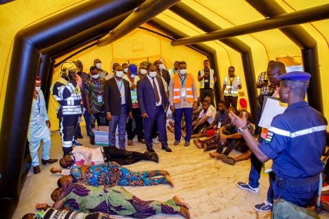 Pour cette édition, l’exercice s’est déroulé le 30 Mai 2024, dans un cadre inédit, hors des installations traditionnelles de l’Aéroport International Gnassingbé Eyadéma (AIGE), sur les plans d’eau de la lagune de Bè et ses bordures.